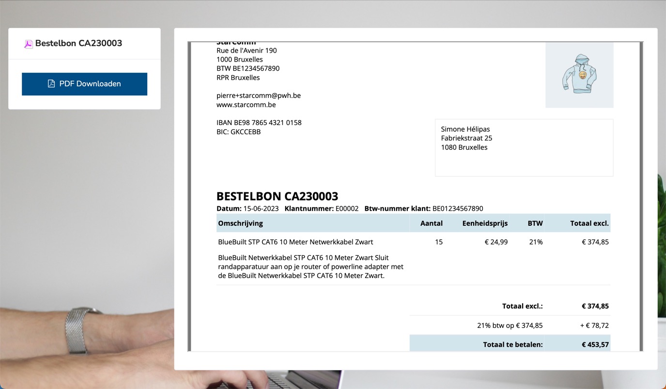 Een bestelbon kan je best laten ondertekenen, zeker indien er een voorschot werd ontvangen. Vergeet daarbij ook je handtekening als zaakvoerder niet!