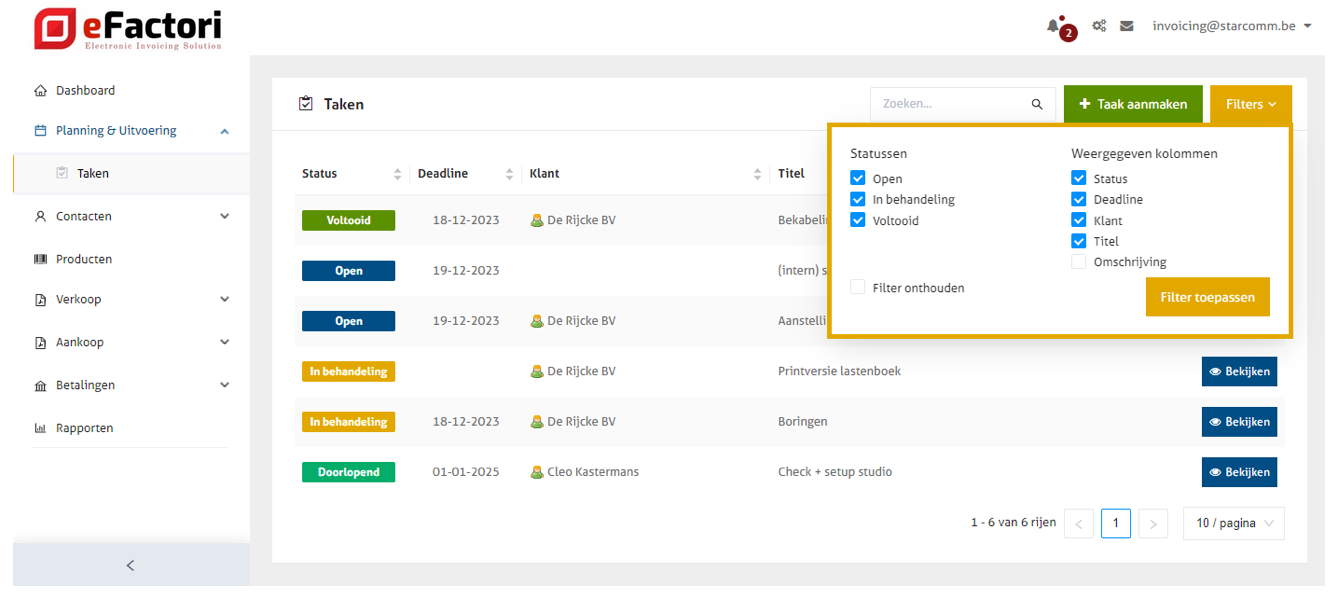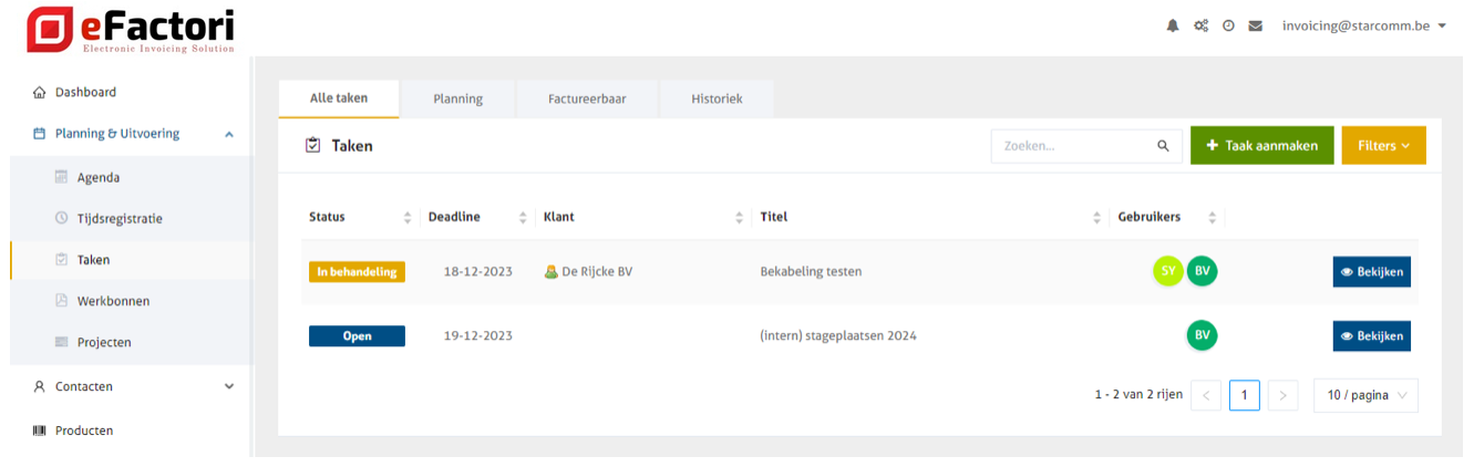Heb je een '[Premium](https://www.efactori.be/nl/tarifs/)' abonnement? Dan is je Taken-module meer uitgebreid. [Lees hier meer over onderaan de pagina](#taken-in-premium-abonnement).