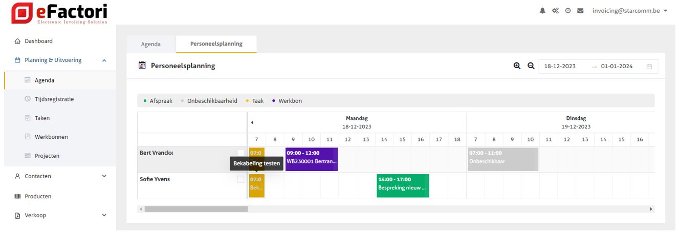 Via de 'Personeelsplanning' kan je meteen een taak inplannen in de agenda van één of meerdere medewerkers.